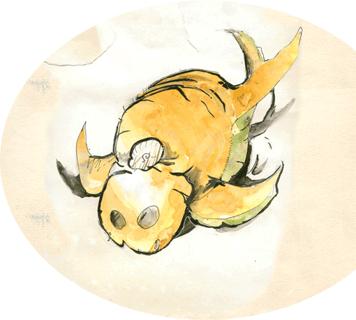 Grosse loche de mer de le taille d'un petit veau marin, Un amphibie nonchalant et vulnérable, suce le sable et les cailloux