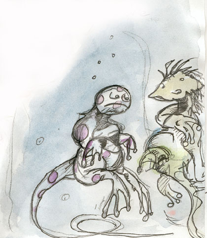Certains parlent de "monstres des puits", mais il est rare qu'ils soient réellements mal intentionés... Les dracs sont généralement des solitaires, et si parfois il arrive que deux-trois individus se regroupent, on n'a jamais observé de rassemblement important de ces créatures. Statut ambigüe Alimentation : variable d'un indivdu à l'autre : poissons, larves, insectes pour les uns, offrandes ou rapines pour d'autres, mais certains, à en croire les dires locaux, se nourrirait du sang des êtres chauds... |