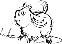 Le Rat-daim est un mangeur de grains de la taille d'un petit lapin, une sorte de gros rat fessu, pansu, une petite queue en touffe relevée sur le dos.