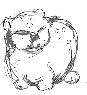 De la taille d'un gros chat de gouttière, rond, au gros ventre