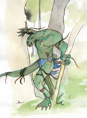 Saard's -[so-rds]- FOR 3d6+6 (16) TAI 5d6 (16)Traditionnellement hôtes des forêt humides du sud et de l'est de la Saousie, les Hommes-lézards - tel est le nom que leur donne les autres humanoïdes- sont par tradition un peuple pacifique... CON 2d6+6 (13) INT 3d6 (10) POU 2d6+6 (13) DEX 3d6 (10) APP 3d6 (10) Armure naturelle. : 2 Spécial : Les dégâts causés