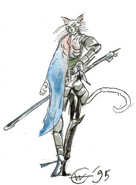 existe aussi de gros mollassons chez les matagots....), apparentés d'une certaine manière au petit peuple ( quoi qu'ils ne soient pas vraiment petits ...) On dit : un matagot, une matagone .. FOR 2d6+6 (13) TAI 3d6+2 (12) CON 2d6+6 (13) INT 2d6+6 (13) POU 2d6+6 (13) DEX 3d6+6 (16) APP 2d6+6 (13) Spé. : Coups griffes bonus 1d3 en bagarre (et pas en arts martiaux, encore moins en compétences d’armes ! ) Infravision |